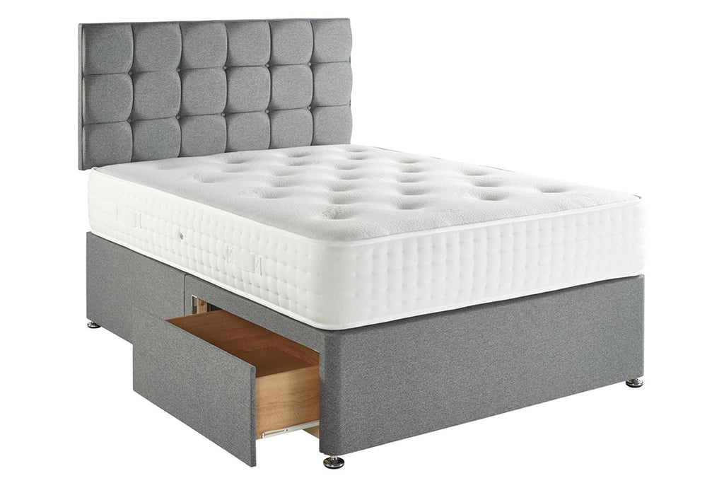 Opulence 1500 Pocket Memory Mattress, End Lift Ottoman Base, 28" Padded Headboard