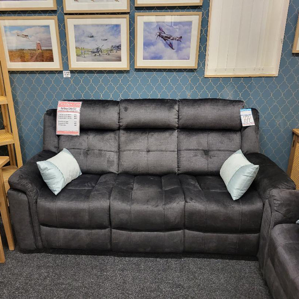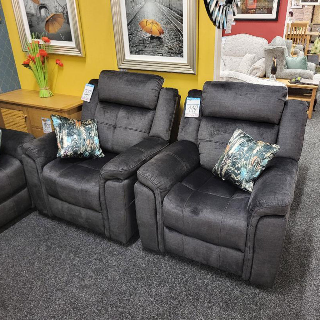 Super Comfy and super value.. all reclining with the addition of a drop down centre console with cup holders on the 3 seater sofa..